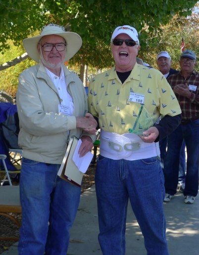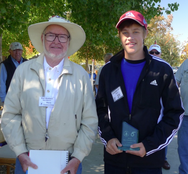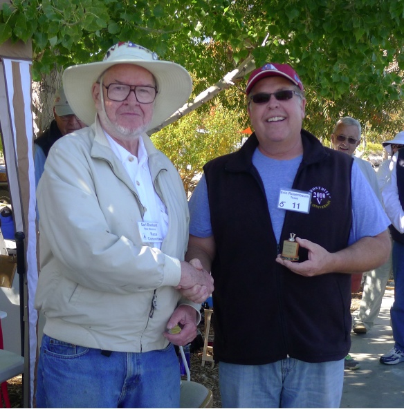 Eric Rosenbaum accepts his latest Rio Grande Cup for winning first place from Earl Boebert, RD.