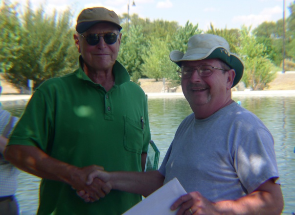Richard Ball receives the First Place Trophy from RD Stephen Bailey.