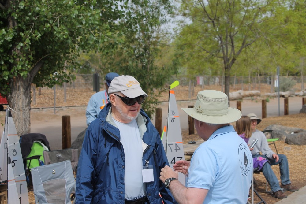 Club Commodore/Race Director with Score Keeper Kathy are cogitating in the shade. (Bannerman photo)